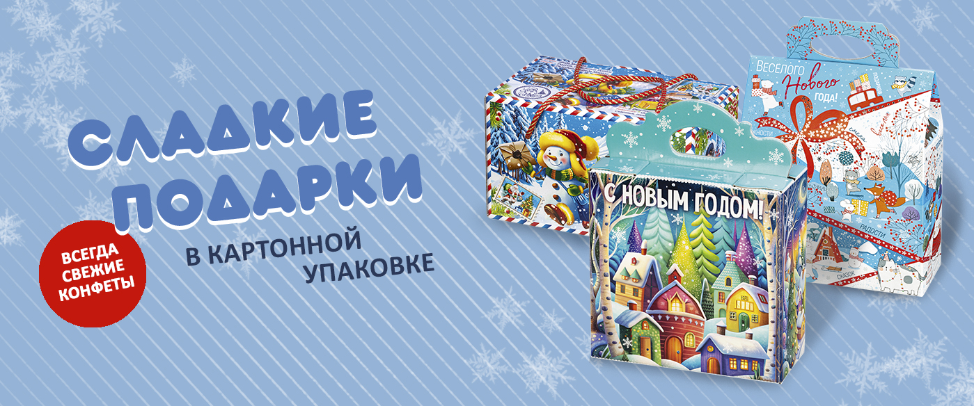 «Кондитерское объединение «12 месяцев» - это интернет-магазин, в котором Вы найдете большой ассортимент сладких новогодних подарков для детей. Уже много лет мы предлагаем самые вкусные детские новогодние подарки в упаковке из картона, текстиля, металла, и тубах, что упрощает процесс выбора. В каждом разделе, для наибольшего удобства, описаны преимущества и недостатки каждого вида упаковки, благодаря чему Вы сможете подобрать лучший вариант.